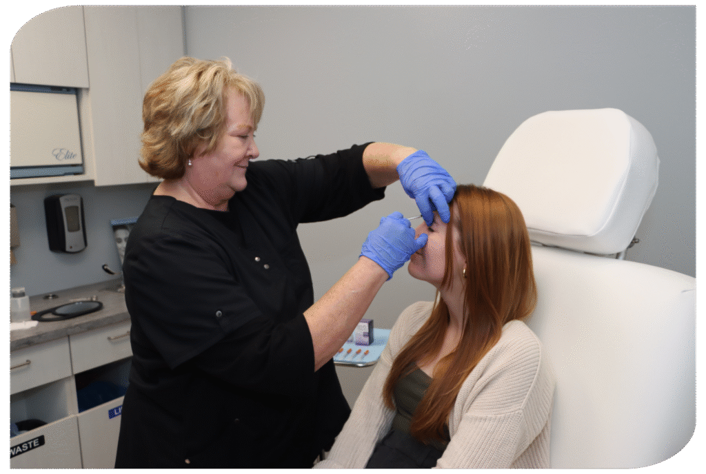 One of our RN injectors will assess your face and personal goals at the start of the appointment. The number of injections and units of BOTOX or Dysport will depend on the areas being treated and the desired results. The procedure is quick, typically taking only a few minutes, with minimal discomfort.