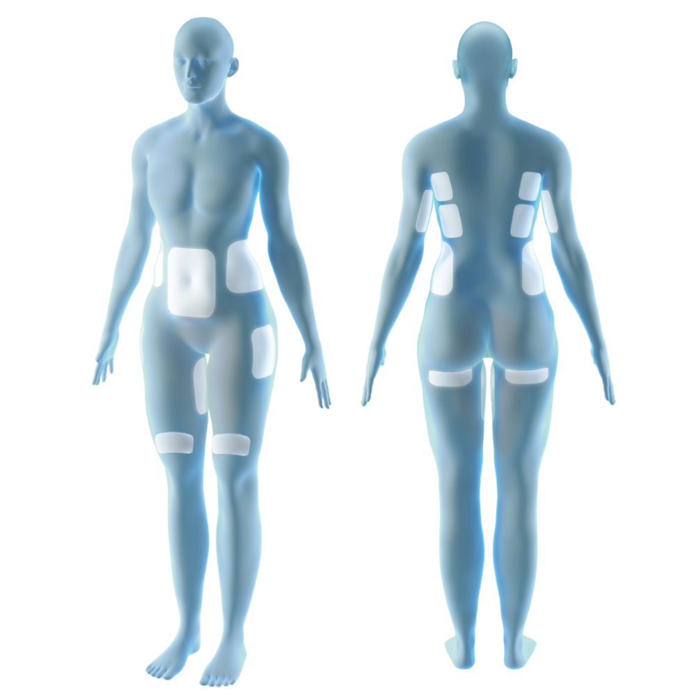 - Areas such as the abdomen, flanks (“love handles”), thighs, arms, bra fat, and under the chin